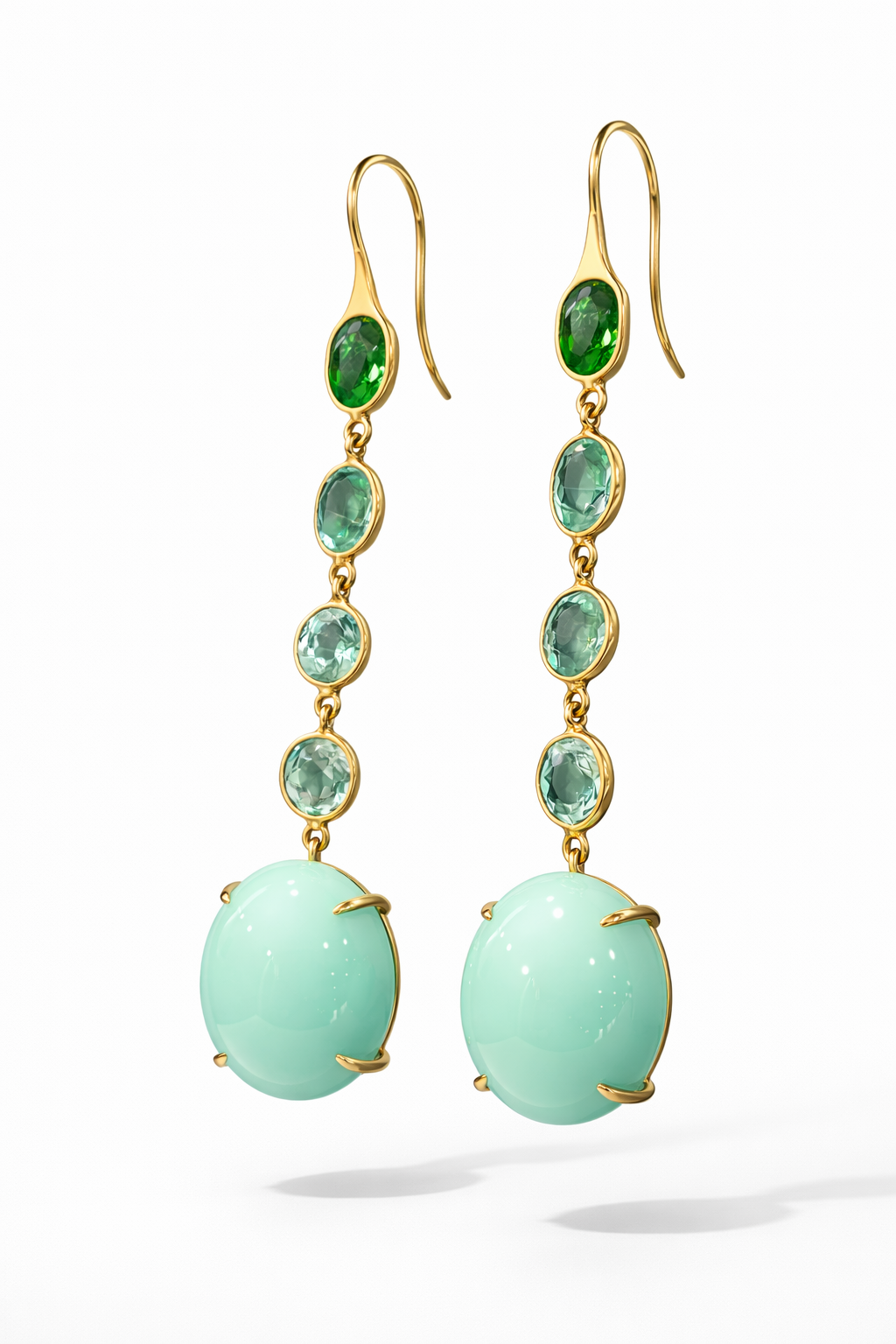Artur Scholl oorstekers groene Opaal 18,75 ct, gr. Diopsiet 1,50 ct, groene Paraiba Toermalijn 3,90 ct