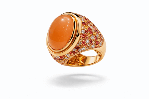 Artur Scholl ring oranje Maansteen 11,97 ct, oranje Saffier 2,34 ct geel Saffier 1,48 ct