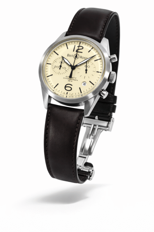 Deze Bell & Ross Vintage BR 126 is een klassieke automatische chronograaf met een uitgesproken instrumentele uitstraling. Het model combineert militaire functionaliteit met een tijdloos vintage design en is geliefd bij liefhebbers van overzichtelijke, goed leesbare chronografen.