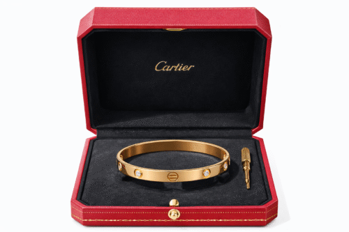 Een tijdloos icoon uit de Cartier-collectie. Deze klassieke LOVE-armband in 18 karaat roségoud combineert een strak, herkenbaar ontwerp met verfijnde luxe. De vier briljantgeslepen diamanten geven het ontwerp een subtiele schittering, zonder afbreuk te doen aan het krachtige, minimalistische karakter.